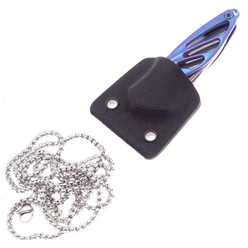 The product is equipped with a titanium pocket clip, but the main way to carry it is through the kydex compact sheath in the kit, the knife can be firmly inserted into it, and then worn on the neck with the help of the chain included in the kit.