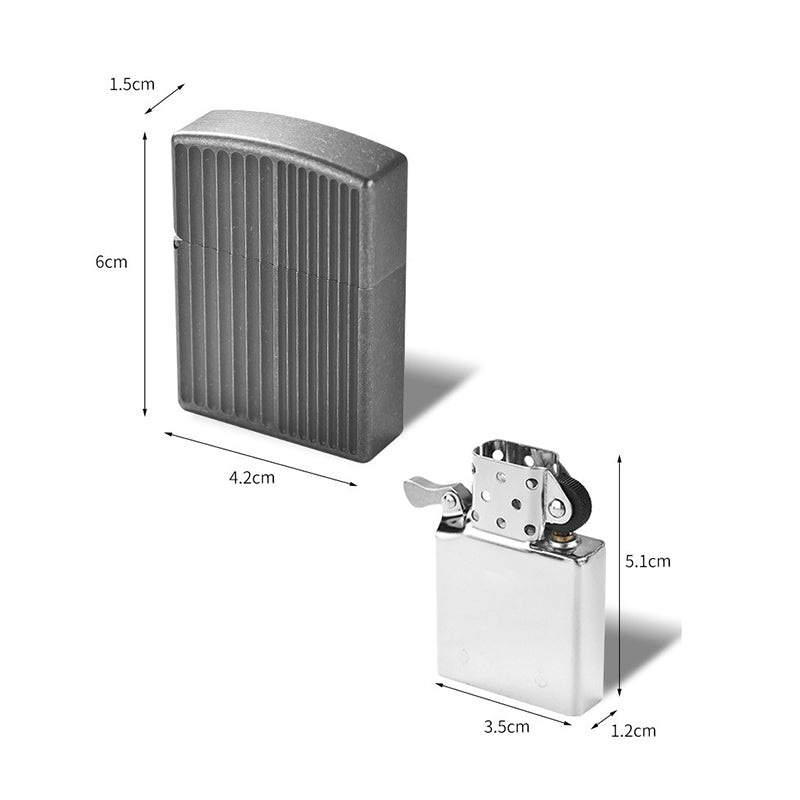 When this product is supplied, it is not filled with kerosene and needs to be added by yourself. It is recommended to use high-quality fuel oil such as Zippo, which can be recycled multiple times, which is environmentally friendly and economical.The lighter is made of high-quality titanium alloy, which has anti-corrosion, lightweight and anti-drop characteristics. It is durable and full-drawn, and can easily cope with daily wear and outdoor environments.