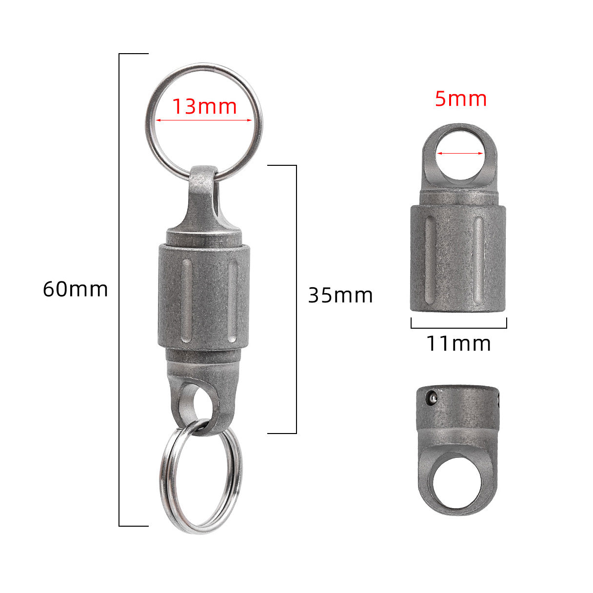 Made of titanium alloy, it is light and tough. Equipped with a safety locking system and a steel ball buckle, with a 360° rotating design, it is stable and anti-release and flexible to access. It supports one-handed disassembly, and the super magnetic suction realizes one-suction and one-pull opening, which is efficient in operation. Equipped with 2 key rings, it can be classified and stored, and it is more convenient to use in both directions. Whether it is daily use or outdoor EDC, it is a practical choice.