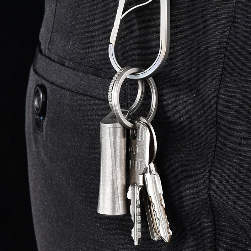 This product is a mini waterproof and moisture-proof sealed compartment made of titanium alloy. It has the characteristics of being lightweight and portable. The size is only the size of a fingertip, which is convenient for daily carrying and access at any time. The design of the sealing ring can effectively block moisture and moisture, and ensure the dry and safe internal items. The product is equipped with a hanging hole design, which is easy to mount on backpacks, keys and other items to further enhance the convenience of carrying. Whether it is used as an emergency portable medicine box or for storing small electronic components, jewelry and other items that need to be moisture-proof and waterproof, it can meet the needs and is an ideal choice for EDC's daily use.
